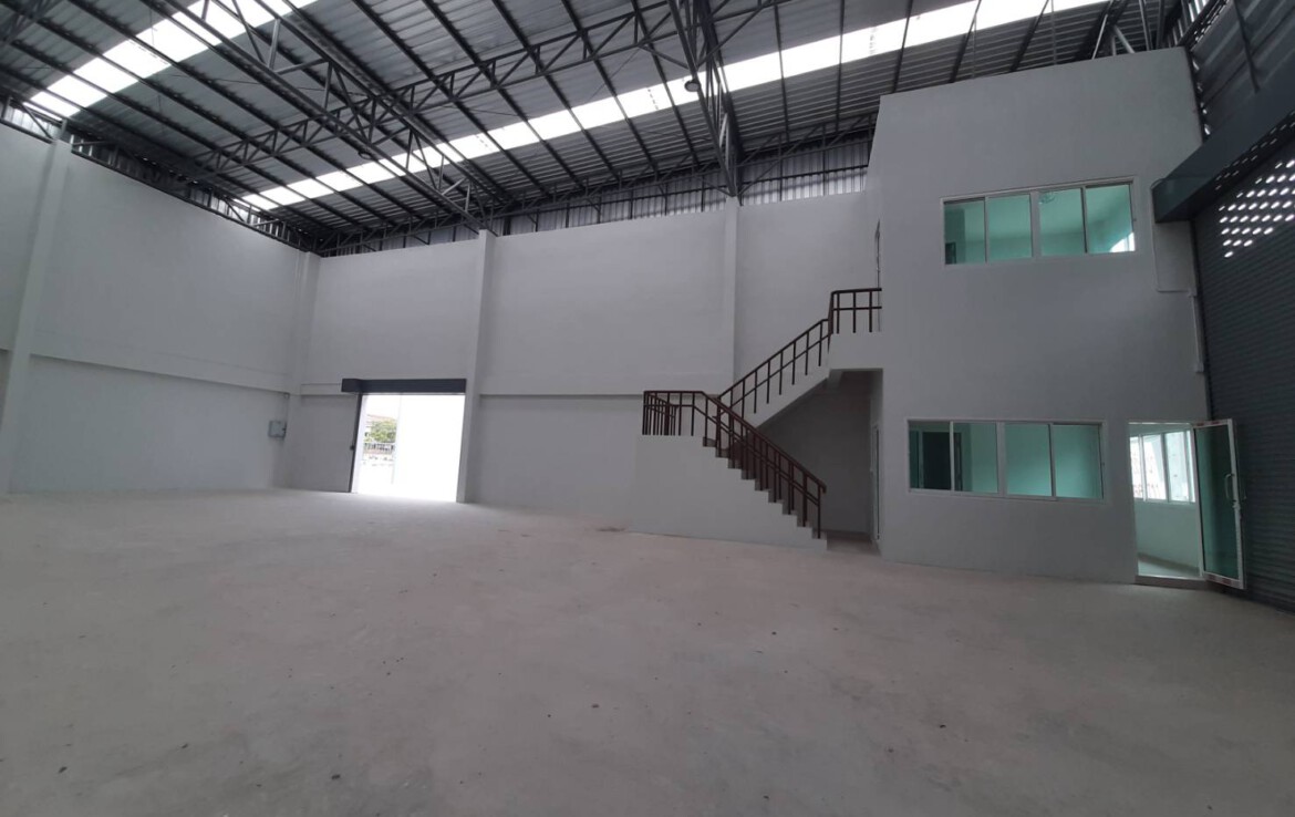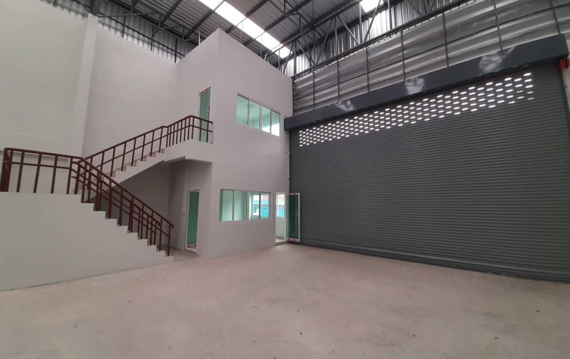 ให้เช่า โกดัง/คลังสินค้า สร้างใหม่ เนื้อที่รวม 104 ตรว. ขนาดพื้นที่ภายใน 294 ตารางเมตร(13×23 เมตร) พร้อมสำนักงาน 3×4 เมตร 2 ชั้น มีห้องน้ำชั้นละ 1 ห้อง(มีอ่างล้างมือ) ทำเลดี การเดินทางสะดวก ระบบน้ำ/ไฟฟ้า พร้อมใช้งาน ให้เช่าเพียงเดือนละ 50,000 บาท